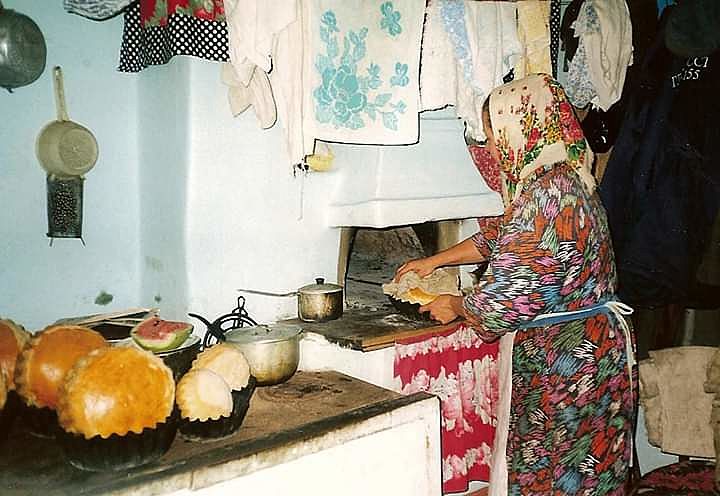 У меня нет воспоминаний, связанных с этими фото. Я родилась в 76. Бабушка была модной, шила себе красивые платья, красилась, работала кассиром в железнодорожных кассах, поэтому всегда выглядила нарядно, депутат сельсовета была. Из хозяйства были куры, утки,гуси. Печи не было, но была груба. Бабушка пекла, но в электродуховке. Все равно тяжела была жизнь- наноси воду, наруби дрова, уголь натаскай, накорми хозяйство, огородов сколько было! Умерла рано, в 73 года.