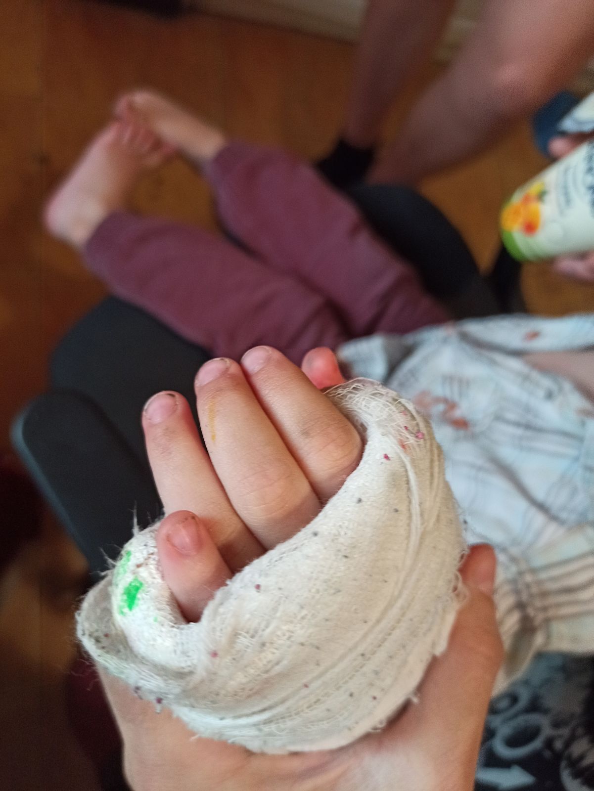 Девочки, подскажите, пожалуйста. Ребенку наложили гипс 3 дня назад, мезинчик сверху прижать, я думаю, что нужно что то с этим делать, он же закаты сильно, посоветуйте, кто знает....