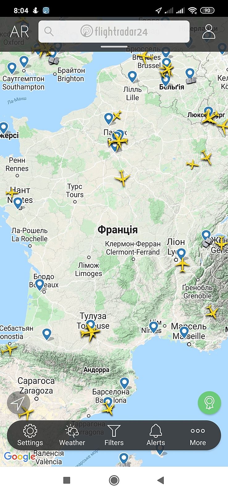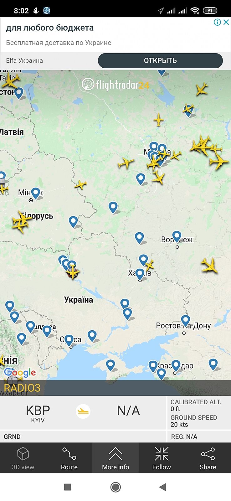 На flightradar24 отражаются не аэродромы -будь они хоть военные, хоть пассажирские, а именно самолеты-которых как мы видим нет, а раз их нет, то таки никто именно над Украиной не летает. Хотя над Европой полёты не прекратились