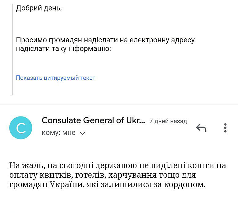 Это вы рассуждаете теоретически. А я выбиралась из Украины спецрейсом,правда, мне повезло, что прямым. Мои знакомые выбирались 6 апреля через Франкфурт. И еще остались друзья, которые не смогли по ряду причин выехать. Ждем, что предложит посольство. Потому что границы Украины (именно Украины) сурово закрыты на выезд украинских граждан. Так что вы сначала думайте, что пишете и кому пишете...