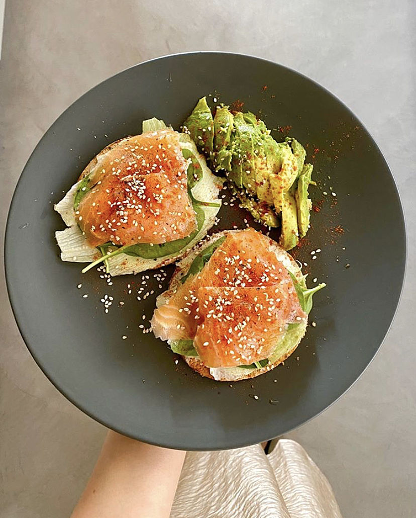 Тосты с филадельфией, листьями салата, помидором и лососем. Научите яйцо пашот делать кто умеет?