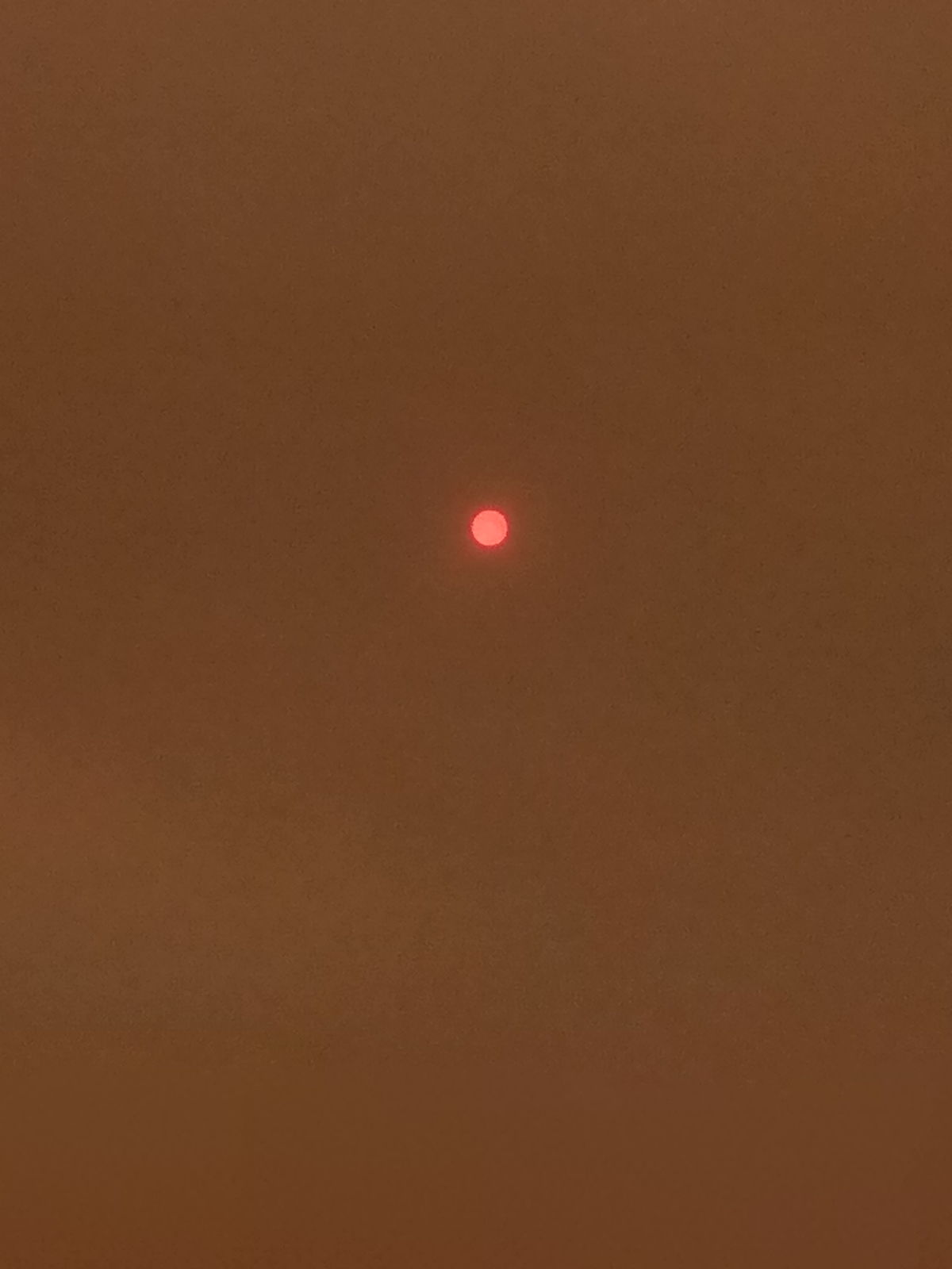 Ну вот позавчерашняя фотка. Сделана часов в пять вечера. Сейчас точно такое же. И вчера тоже. Черниговская обл. На фото небо засвечено, в реале обычное голубое. Солнце ярко красное, даже ярче, чем на фото.