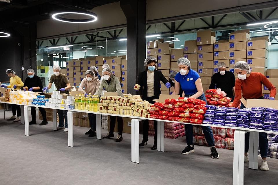 видела фото в ФБ недельной давности как волонтеры от Порошенко комплектовали наборы продуктов для малоимущих