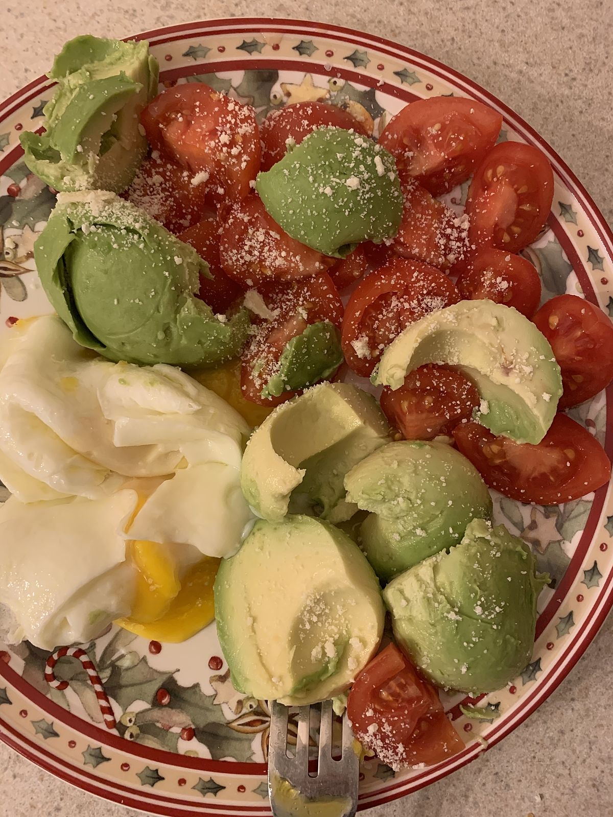 Я сегодня авокадо купила, завтра салат сделаю, всё есть: микрогрин, моцарелла, семгочка, огурчики