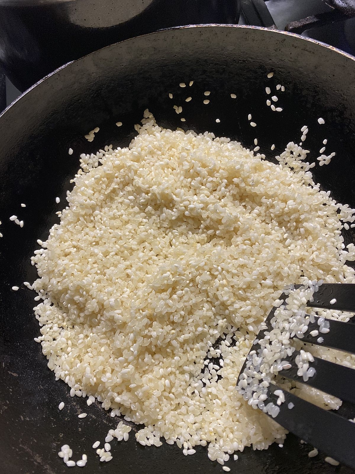 но это не строго обжаренный рис - вода-то добавляется и тушится все потом