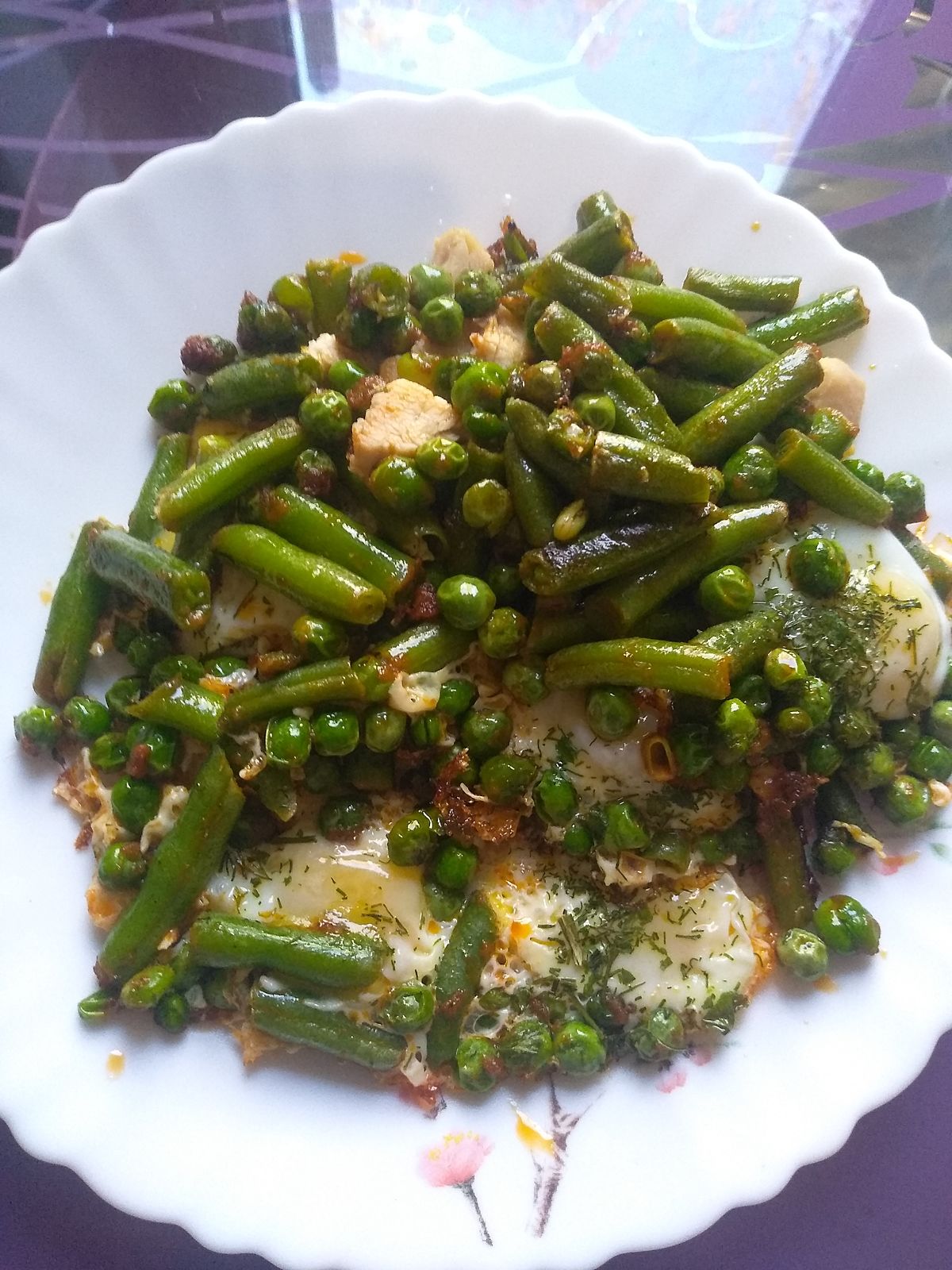салат: садовая лобода(как раз молоденькая в клумбе), морская капуста восстановл.из сухой, пророщенный маш не бланшированный, соевый соус, раст.масло.