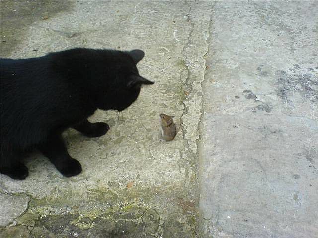 Это мышка) Бежала через наш двор, а тут наш Мотенька нарисовался. Посмотрели друг на друга и пошли дальше по своим делам. Котёнок наш был гурман)))