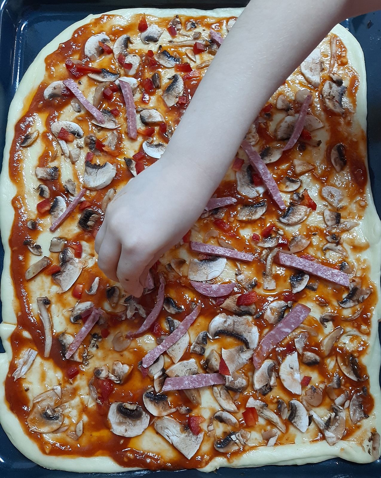 Вот доказательство, дети украшают, сейчас в духовку пицца пойдёт: