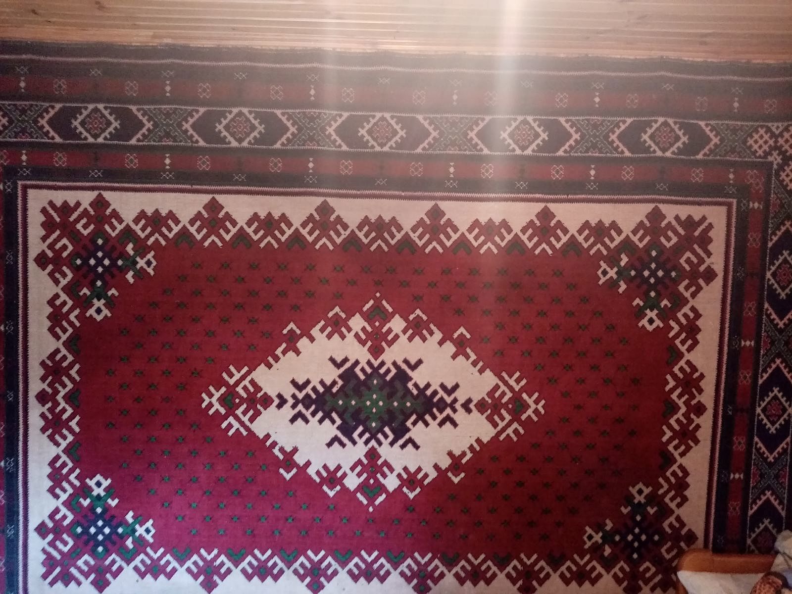 По-моему, вполне симпатичный ковер, не аляповатый, яркий. Если у вас не крикливый, а почти однотонный интерьер, то он будет акцентом. Не смотрится совдеповским, а учитывая, что реликвия и шерстяной, цены ему нет