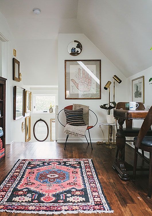 Вопрос такой: допустимо ли в современном интерьере использовать такой ковёр? Ему лет 60, чистая шерсть, состояние хорошее. Хочу положить на пол в гостиной. Что думаете? Или странно? Он очень необычный, этот рисунок геометрический, цвета хорошие бардо, зелёный и бежевый.