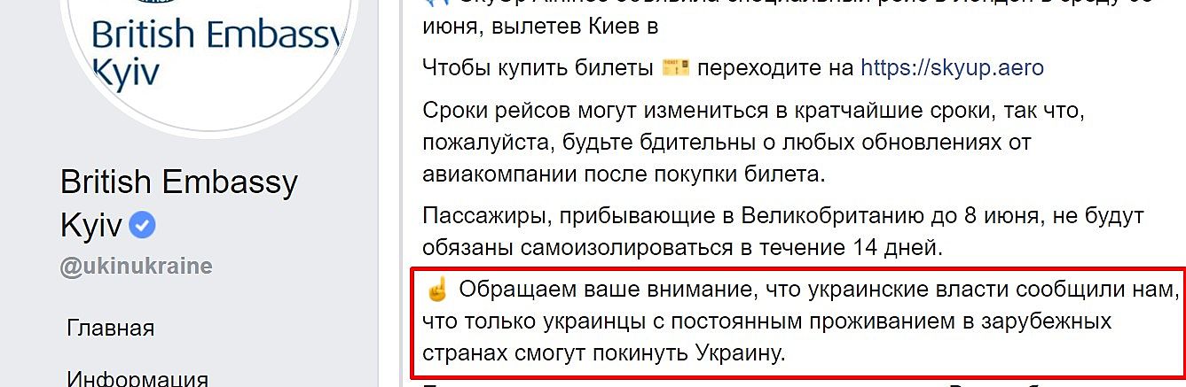 в сообщении британского посольства дословно сказано ’только украинцы с постоянным проживанием в зарубежных странах смогут покинуть Украину’. без привязки к лондону или берлину. Нельзя.