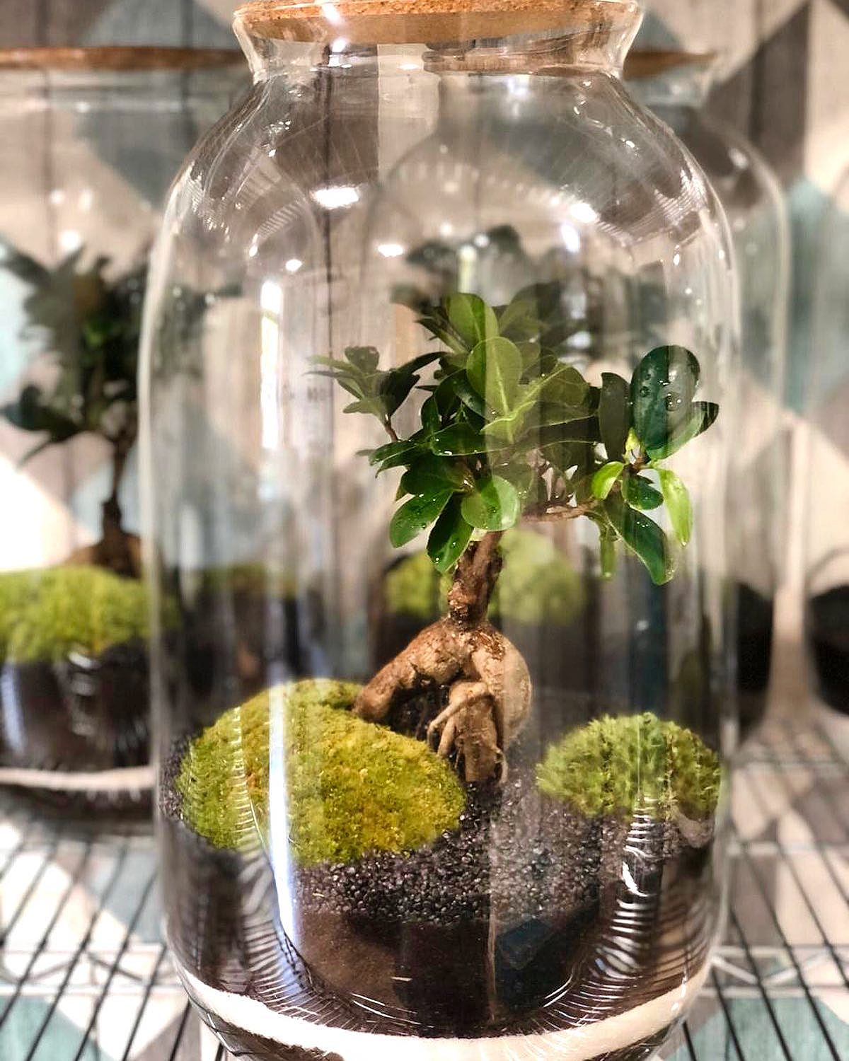 Делала флорариум сама. Под крышкой его даже поливать особо не надо. Там создаётся свой микроклимат и растения в нём живут. Простоял у меня несколько лет. Пока растения не выросли и не пришлось его разобрать.