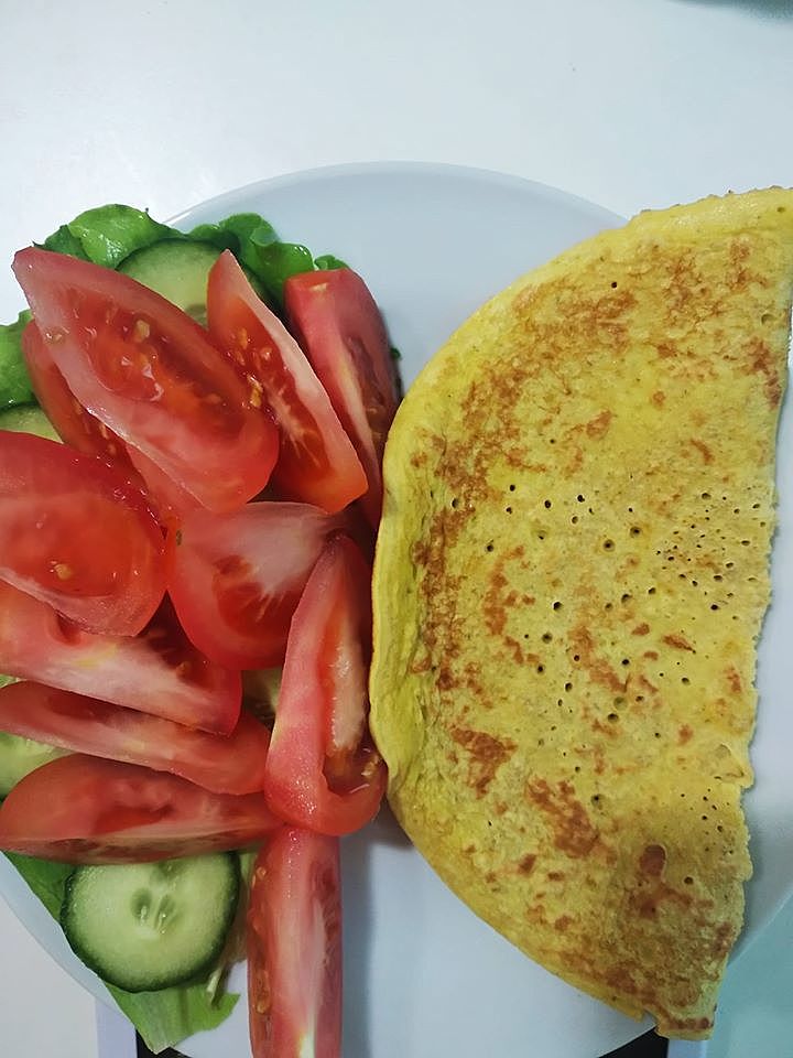 3 ст ложки овсянки+одно яйцо+50 мл молока - блендером и на сковородку. Мне лично он очень-очень нравится. На завтрак - лучше обычной овсяной каши.