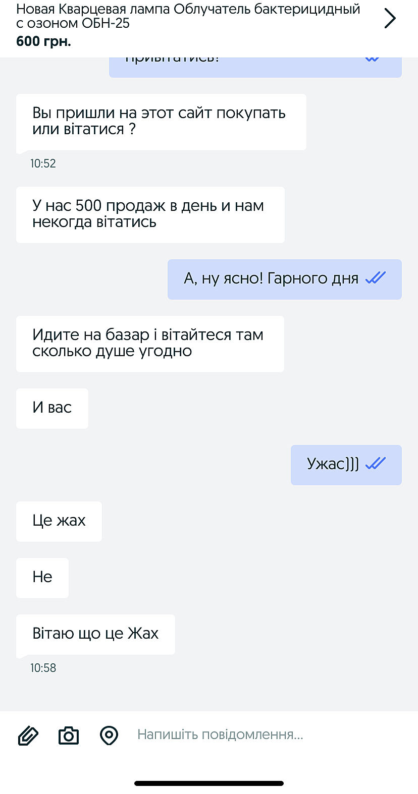 Вы знаете, какая у продавца в данный момент ситуация? Да, я всегда отвечаю вежливо. Здороваюсь даже если без всякого приветствия сразу спрашивают - Замеры, наличие и т.д. Но пару дней назад, например, была за городом, интернет слабый вылетал, я за ребенком скакала по пляжу. Зашла на секунду в объявления здесь, так же быстро ответила без всяких мыслей и все. Покупатель купил товар и не падал в обморок от моей невежливости))