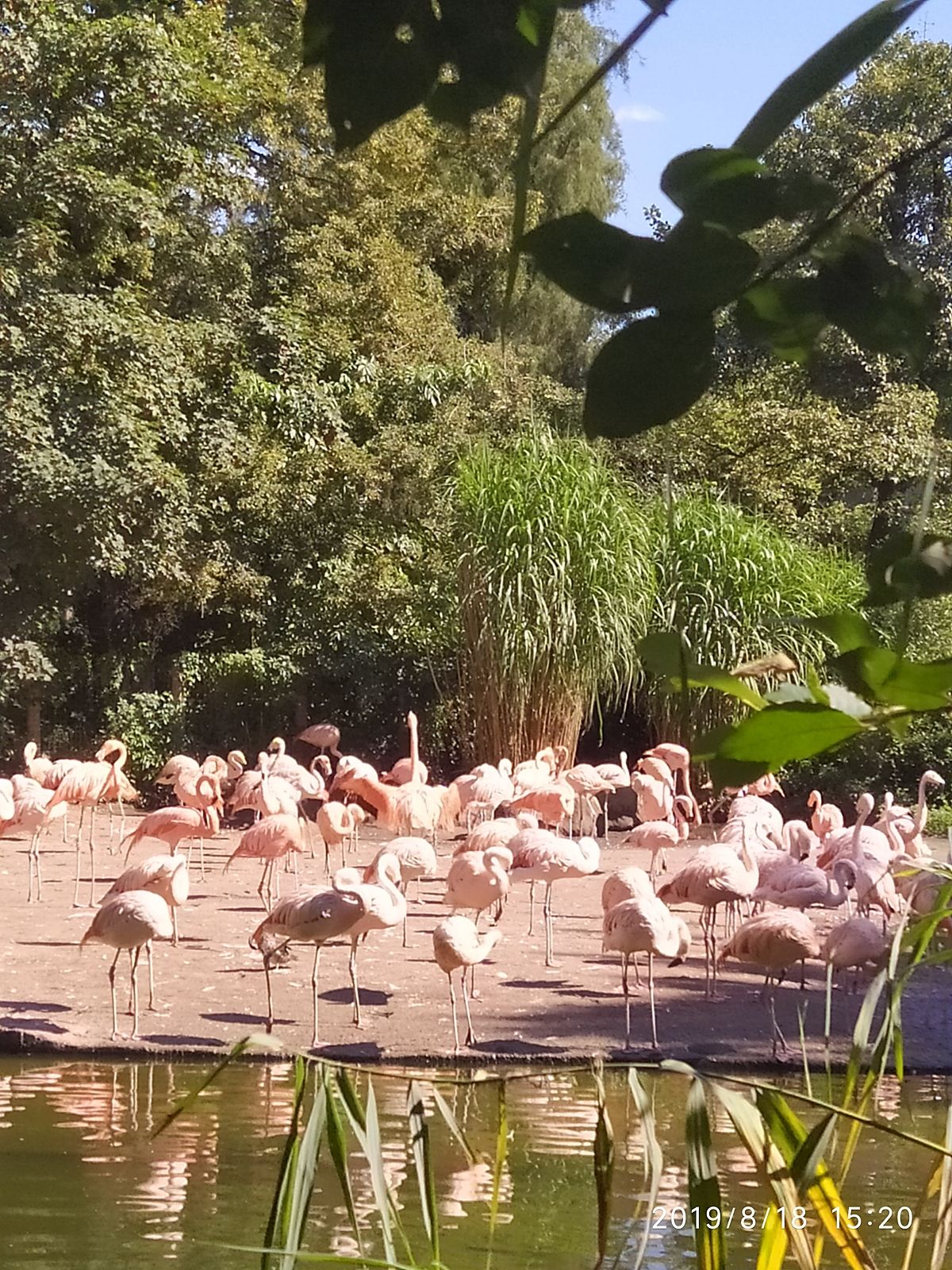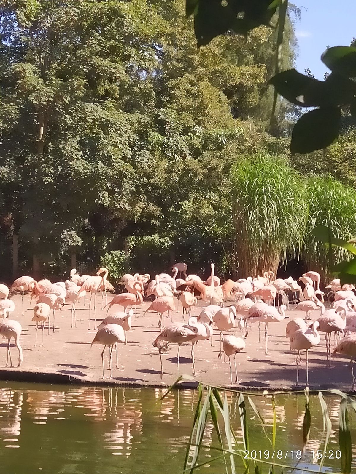 Вот. Не знаю, насколько фотопередает - но в реальности очень красивый розовый цвет, дух захватывает) Территория зоопарка огромная, все для комфорта животных - люди издалека фотографируют, поэтому может не так видно цвет. Ну и день был очень солнечный.