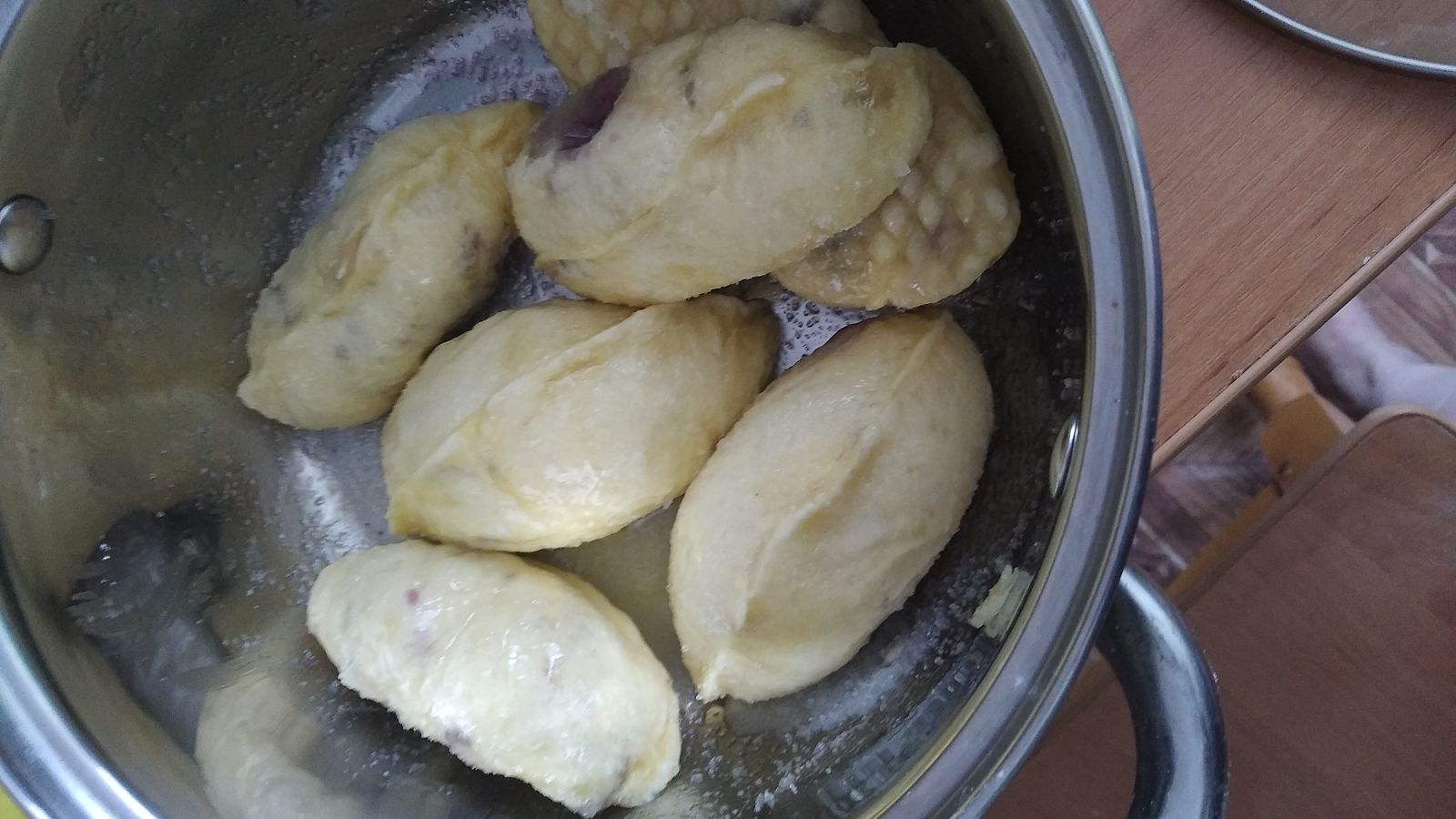 Замішуєш, потім залишаєш тісто на півгодини на розслойку і вже потім ліпиш вареники і вариш на парі 3-5 хвилин в залежності від величини вареників. Начинка чайна ложка цукру прямо в вареник і 6-7 вишень без кісточок. Мої варилися 5 хвилин. Далі за бажанням посипаєш цукром або добавляєш вершкове масло, або взагалі нічого, вони й так смачні.