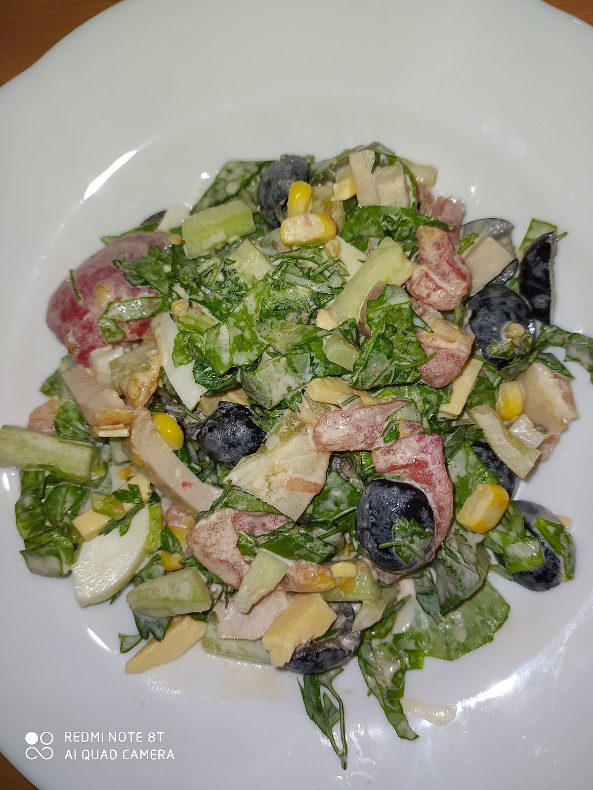 Хороший салат, только я бы масло оливковое вместо майонеза, и не потому , что он вредный, просто я его не люблю. Ну или сметану