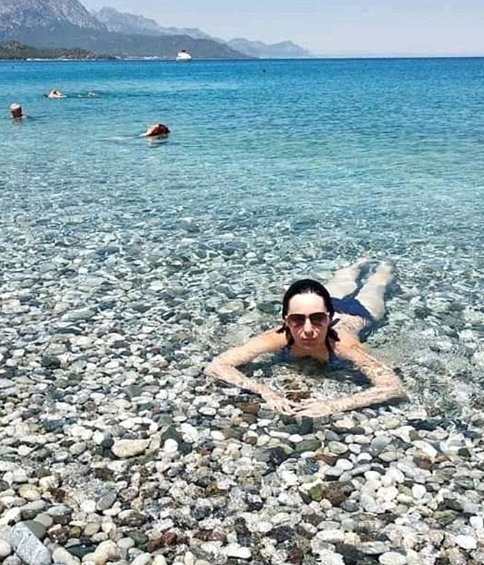 У меня в этом году единственная пляжная фотка в тёплой длинной кофте и с крестницей, скрюченная в три погибели