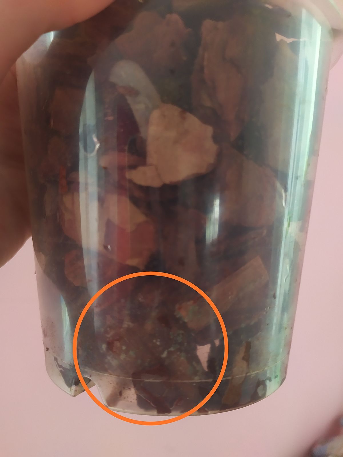Надо было прокипятить кору. И добавляйте таблетки активированного угля. Если много плесени, возьмите эту же кору, стерилизуйте, добавьте угля и немного мха. Очень крупные куски коры, некоторые поломайте.