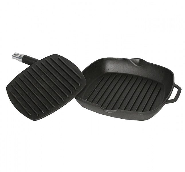 сковоподу гриль маслом можно не смазывать. Разогреть и жарить продукты смазаные маслом или после маринада