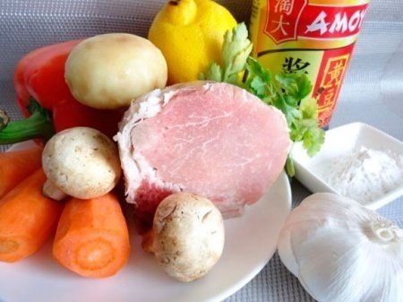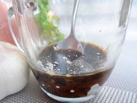1. Готовим заливку , смешиваем крахмал и соевый соус. В оригинальных рецептах этого блюда нужно добавлять рисовый уксус, я заменила его лимонным соком по вкусу. Готовую заливку отставляем.