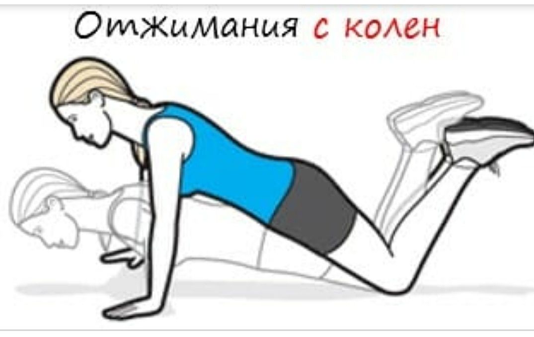 Разминка обязательно- суставы,колени.Выпады, отжимания от стула,планка+ упражнения из йоги, берёзка,мостик