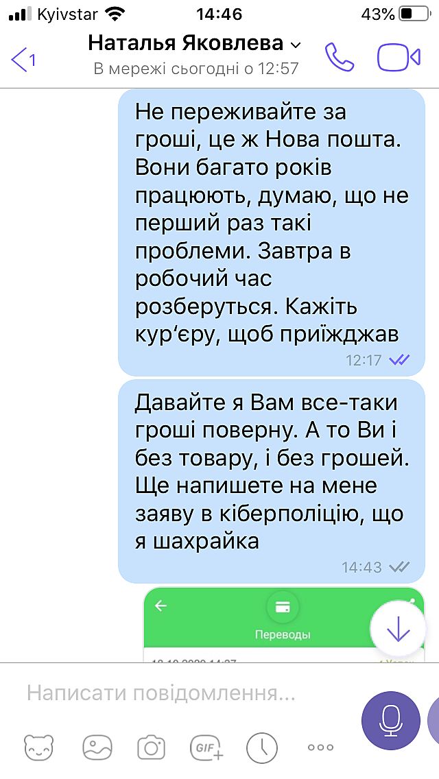 Все, вертаю гроші покупцю. А то скаже, що я шахрайка