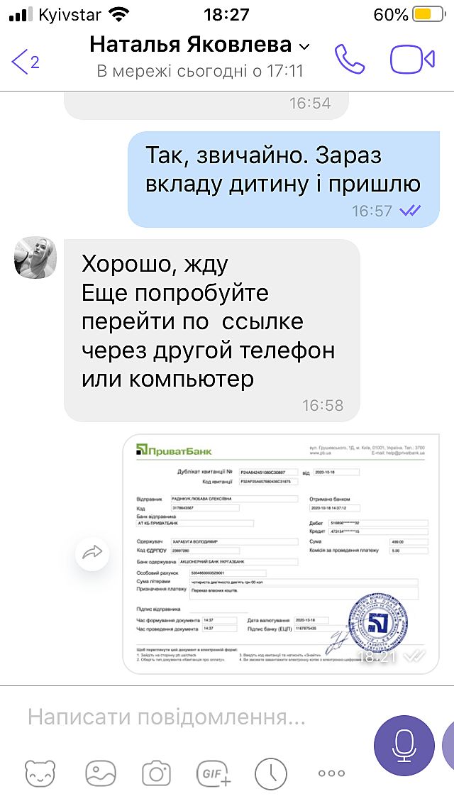 Квитанцію відправила, я ж чесний продавець.