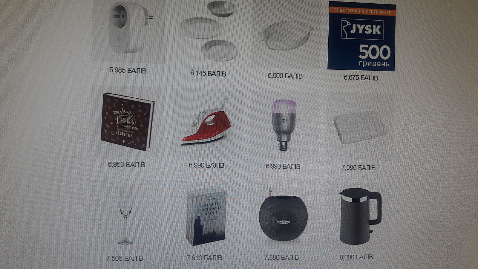 У меня карта уже год. По безналу в среднем около 8-10т в месяц. На счету в Мастеркард ревордс 2600 балов. Я еще ничего не заказывала. Но покажу вам расценки на товары чтобы вы сориентировались
