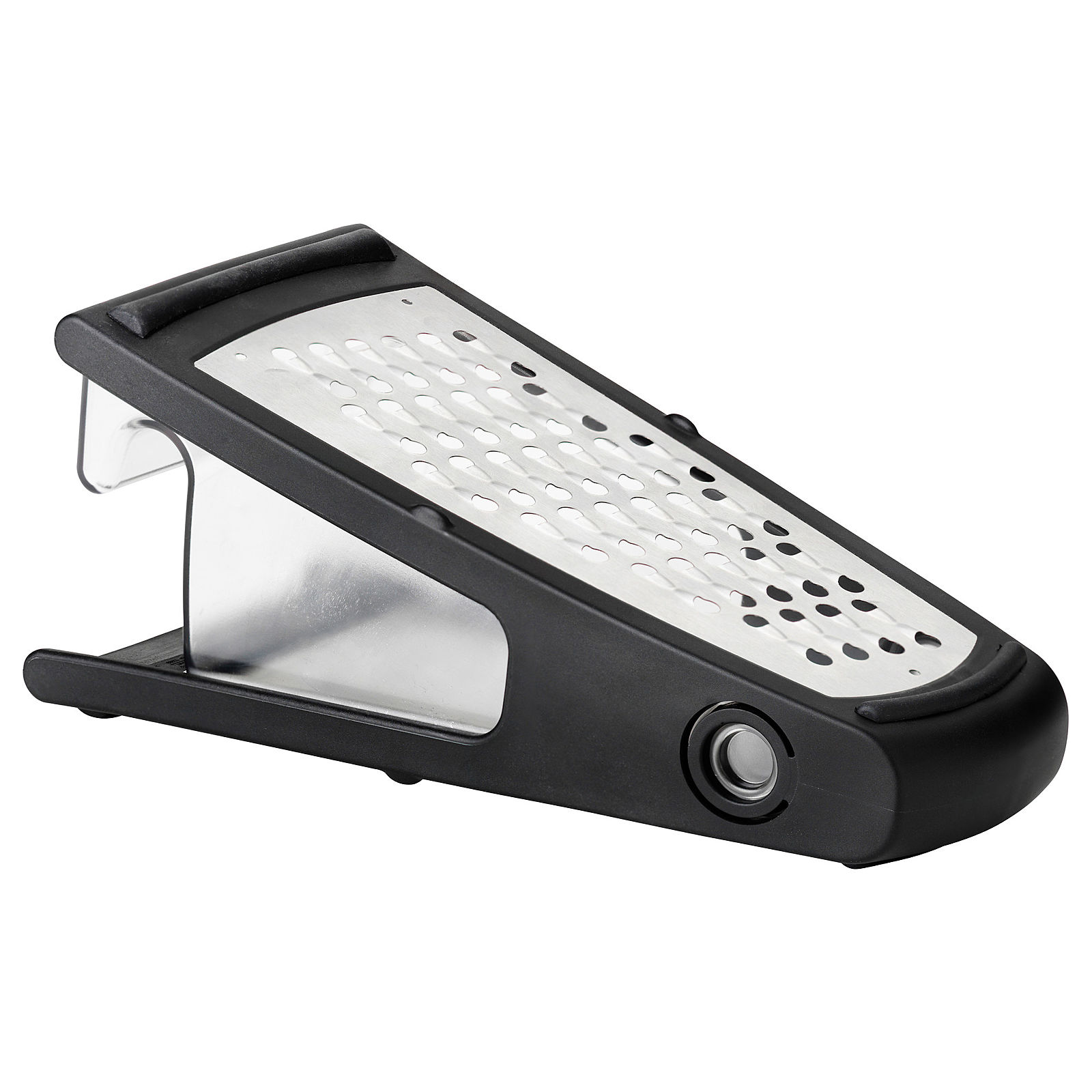 Да, контейнер. Одна сторона терки с крупными ячейками - для крупного натирания, вторая - с мелкими