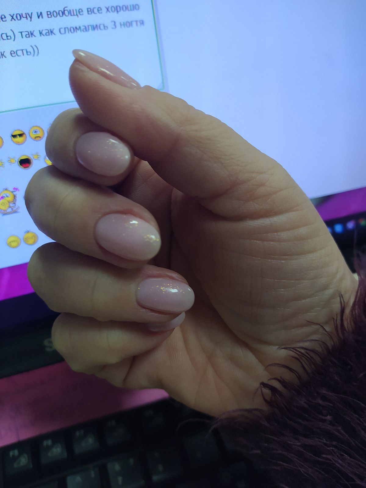 у меня все хорошо , абсолютно и наращивать не хочу и вообще все хорошо у меня форма не удачная в этот раз получилась) так как сломались 3 ногтя ровно по середине и пришлось пилить уже как есть))