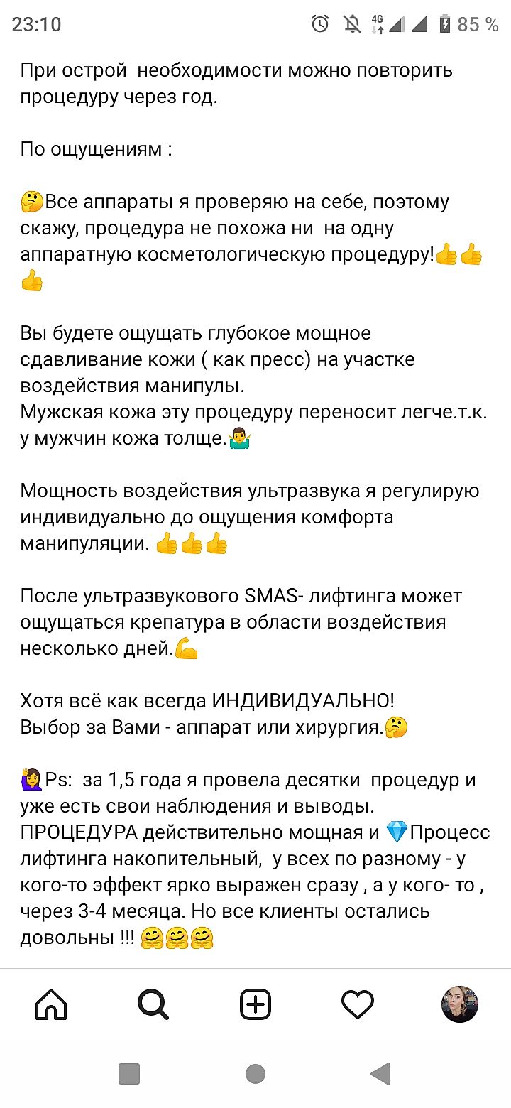 Я делала месяц назад. Результат супер. У меня верхние веки очень опустились с возрастом. Шла на смас Альтеру ,чтобы конкретно исправить этот дефект. Косметолог предложила сделать всё лицо. Не жалею. Лицо засветилось . Стало свежее гораздо. Через неделю сделала prx 33.