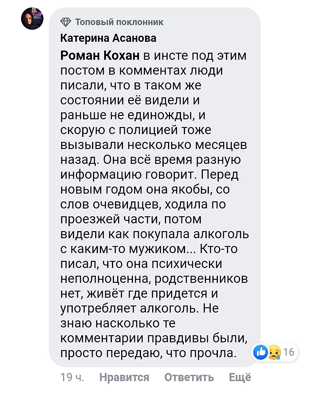 Девочки, может сообщить как-то родным Оли? Кинуть ссылку на видео. Или в том посту в ФБ на Павлоградский странице в комментариях указать, кто с ней знаком, тот по видео поймет она или нет