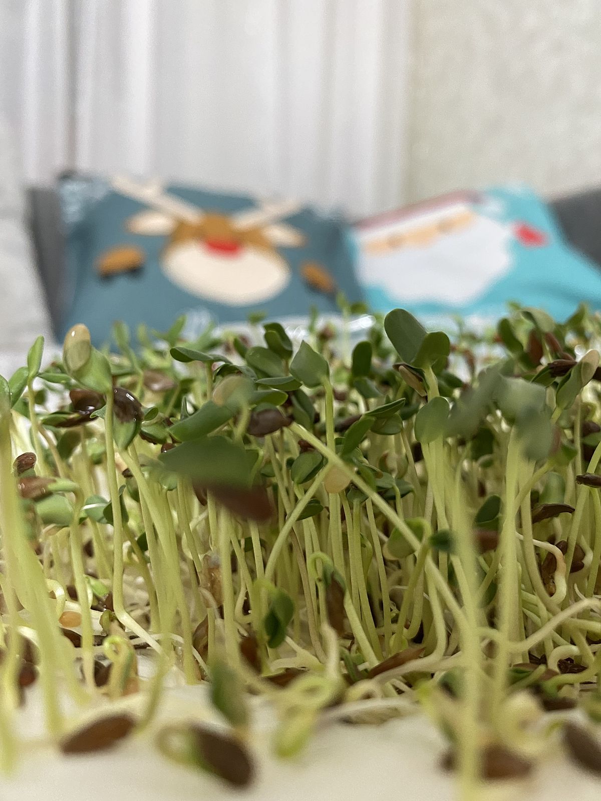 Брокколи и горошек сейчас растет. Вы в чем растите?