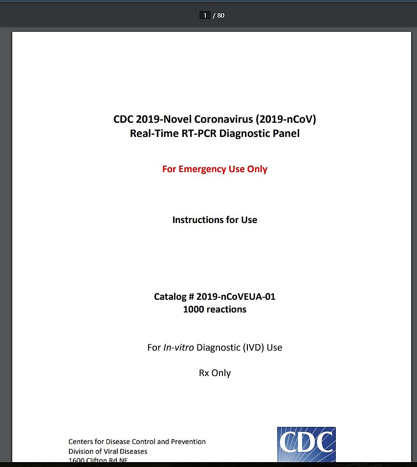 «Поскольку количественные изоляты вируса 2019-nCoV в настоящее время недоступны, анализы, предназначенные для обнаружения РНК 2019-nCoV, были протестированы с использованием охарактеризованных запасов полноразмерной РНК, транскрибированной in vitro (ген N; доступ в GenBank: MN908947.2) с уже известным титром...»