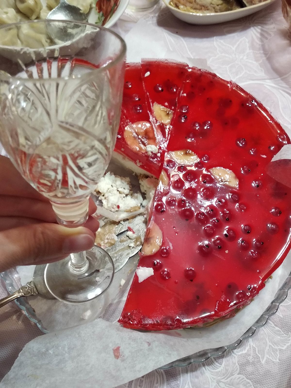 Завчасно розвожу два пакета желе. Даю охолонути. І коли творожна маса трішки застине, виливаєш желе і на ніч лишаєш в холодильнику😉