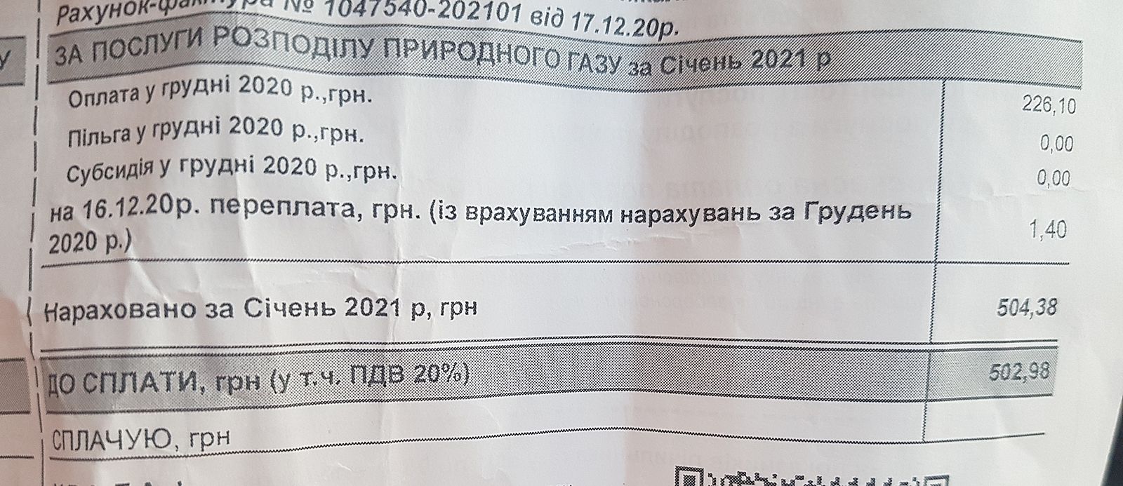 В прошлом году платили за транспортировку 249 грн/месяц, живём в частном доме, стараемся экономить. Сегодня пришла платёжка за январь 502 грн/месяц. Я в шоке. Дожились, подняли в 2 раза, почему теперь и летом и зимой я должна платить в никуда 500 грн. У меня паника