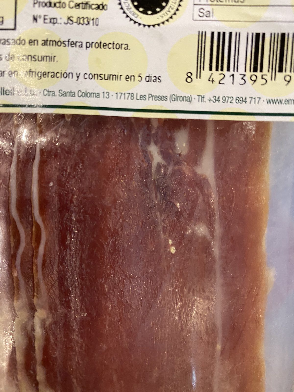 Мне передавали с Испатии хамон, то на всех упаковках тоже такое было. Все свежее. Думаю это ничего страшного.