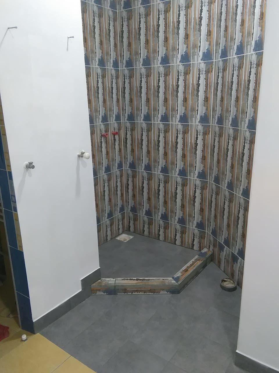 Гидроизоляции ушло не больше 1 кг ( густая белая ,кисточкой была нанесена до плитки)