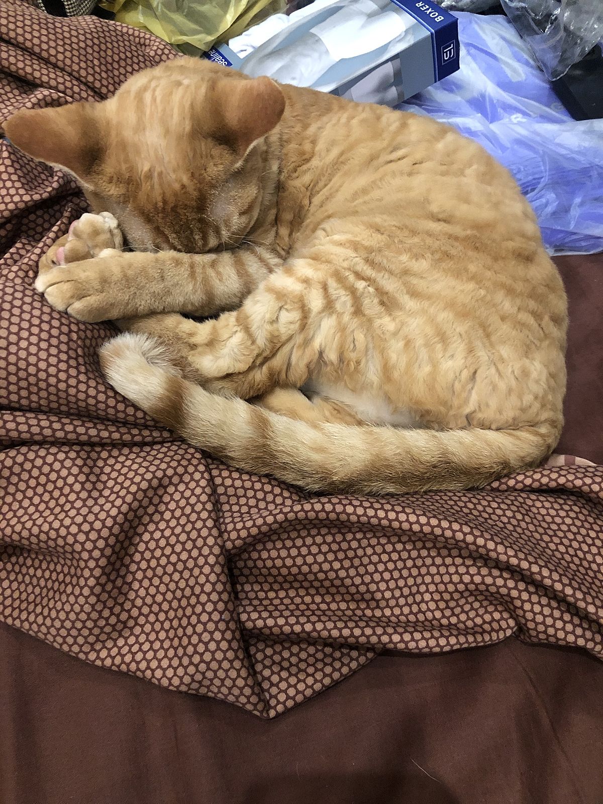 Это у нас кот фанат коробочек. Мне прислали духи! А он умудрился туда попу уместить