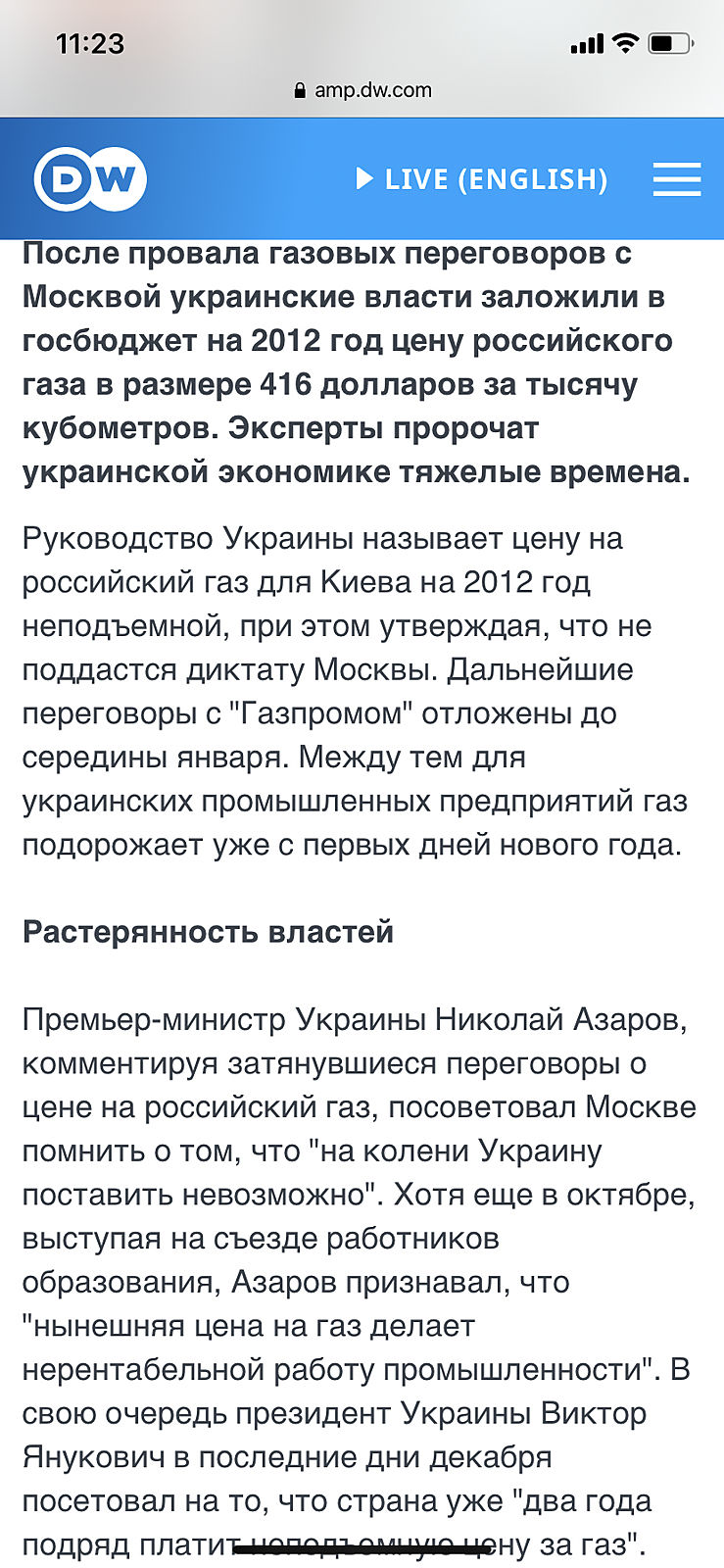 А куда вы там уходили от российского газа? Расскажите