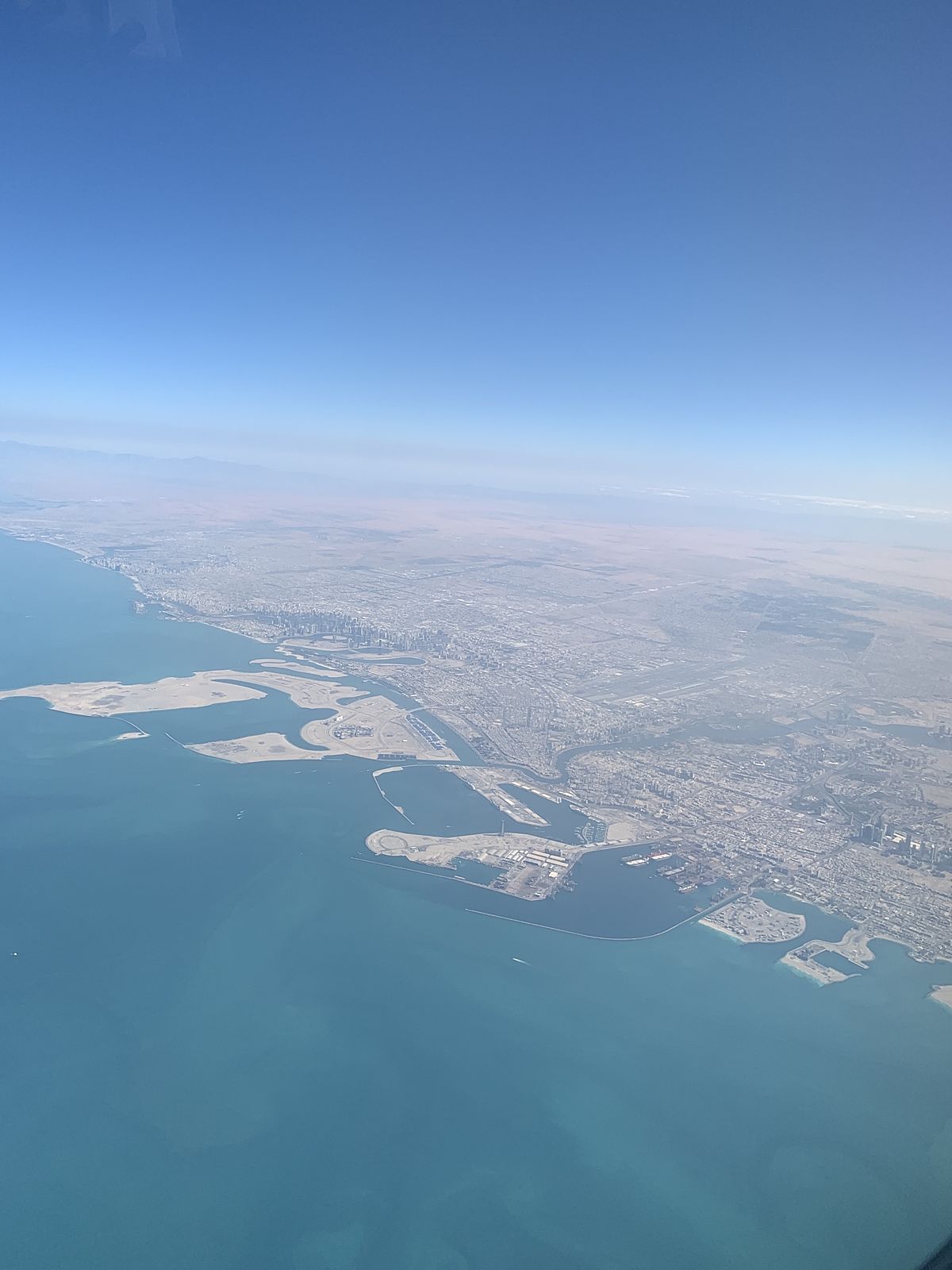 вы не поняли. Просто именно Эмираты с воздуха имеют характерный вид. Понятное дело, что они максимально постарались посадить хоть что-то в туристической части и прилагают титанические усилия, чтобы цвели парки. Но это пустыня и современный город из бетона