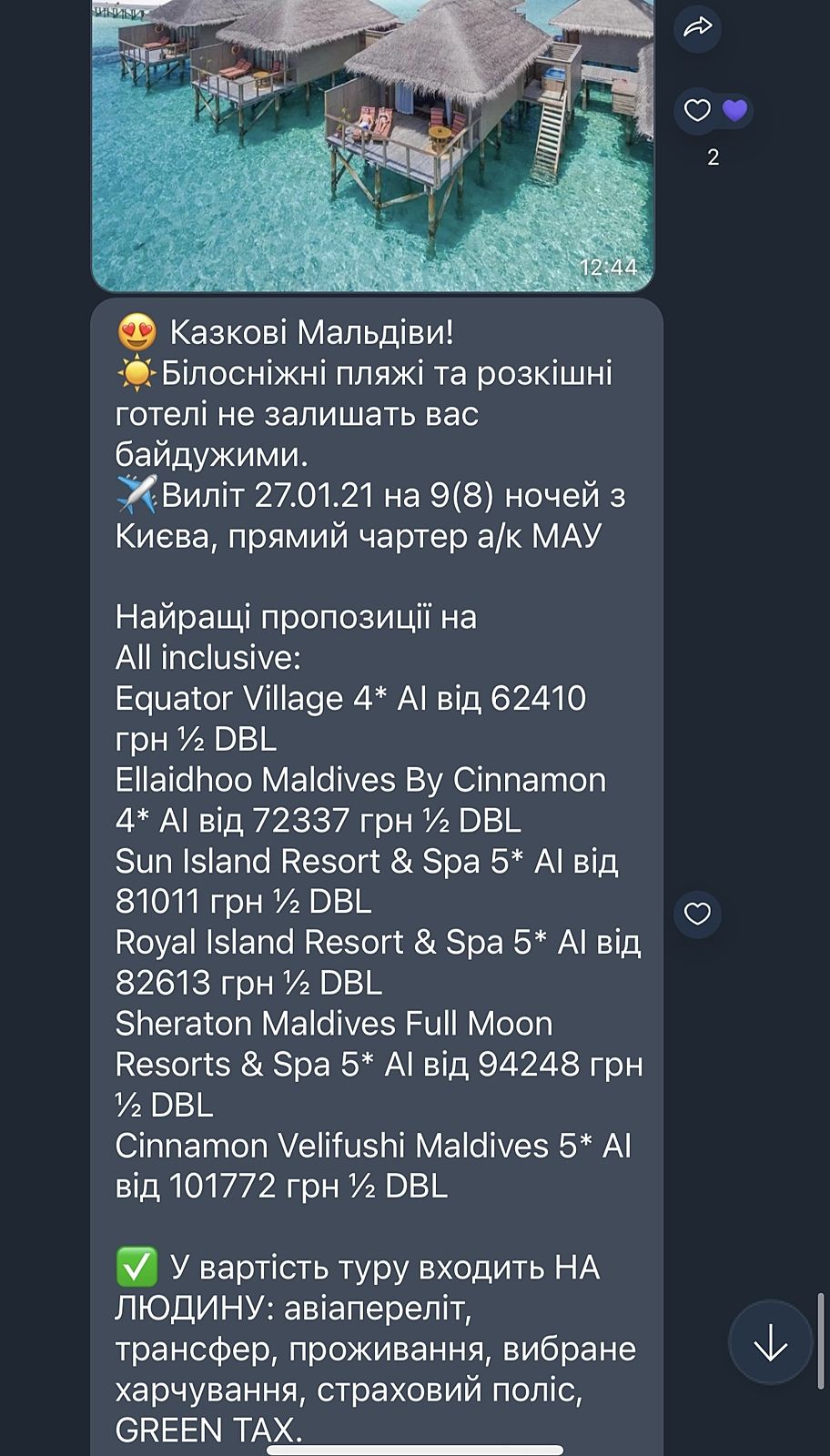 У нас доминикана по рб на такой состав в несезон на з недели 8 вышла,, вот и я думаю , Мальдивы ведь ещё дороже