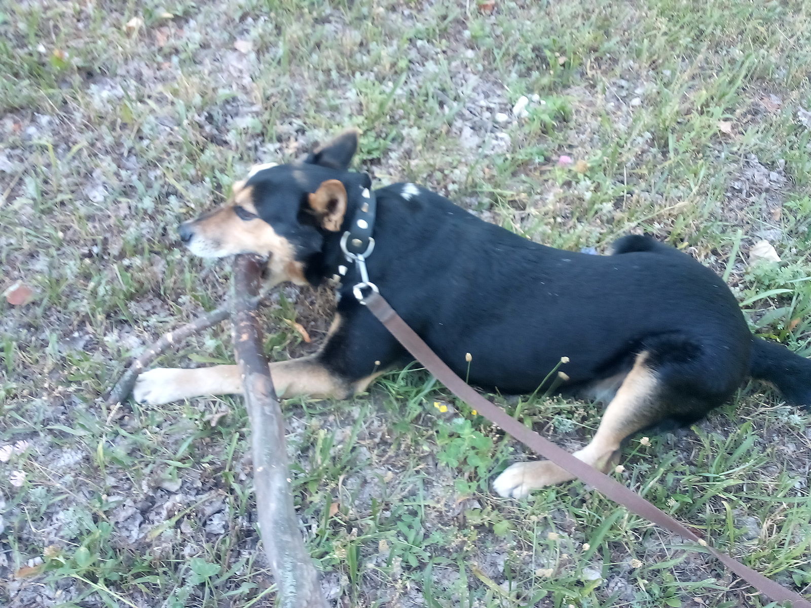 В приюте, переставшая рожать полухаски. Держали ради щенков, как перестала беременеть избавились. Собака веселая добрая, первое воемя котов гоняла, но поняла с интеллектом все отлично, бегает без поводка за птицами и собак тоже гоняет, только на поводке надо.