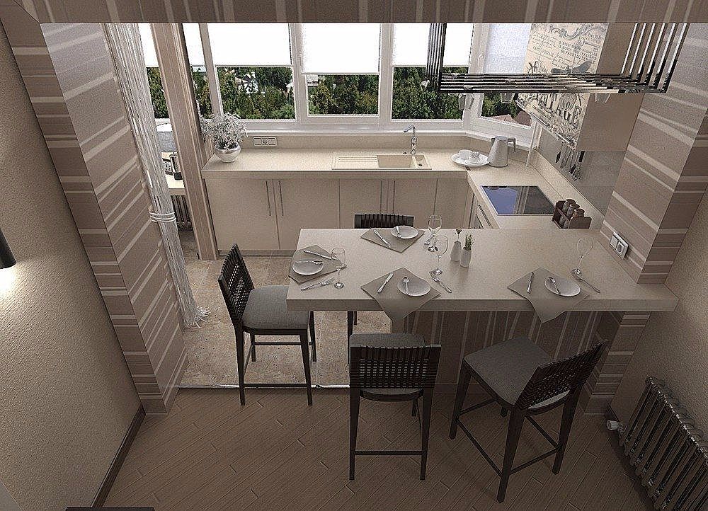 Объединение кухни или комнаты с лоджией без демонтажа подоконного блока и вмешательства в систему отопления.