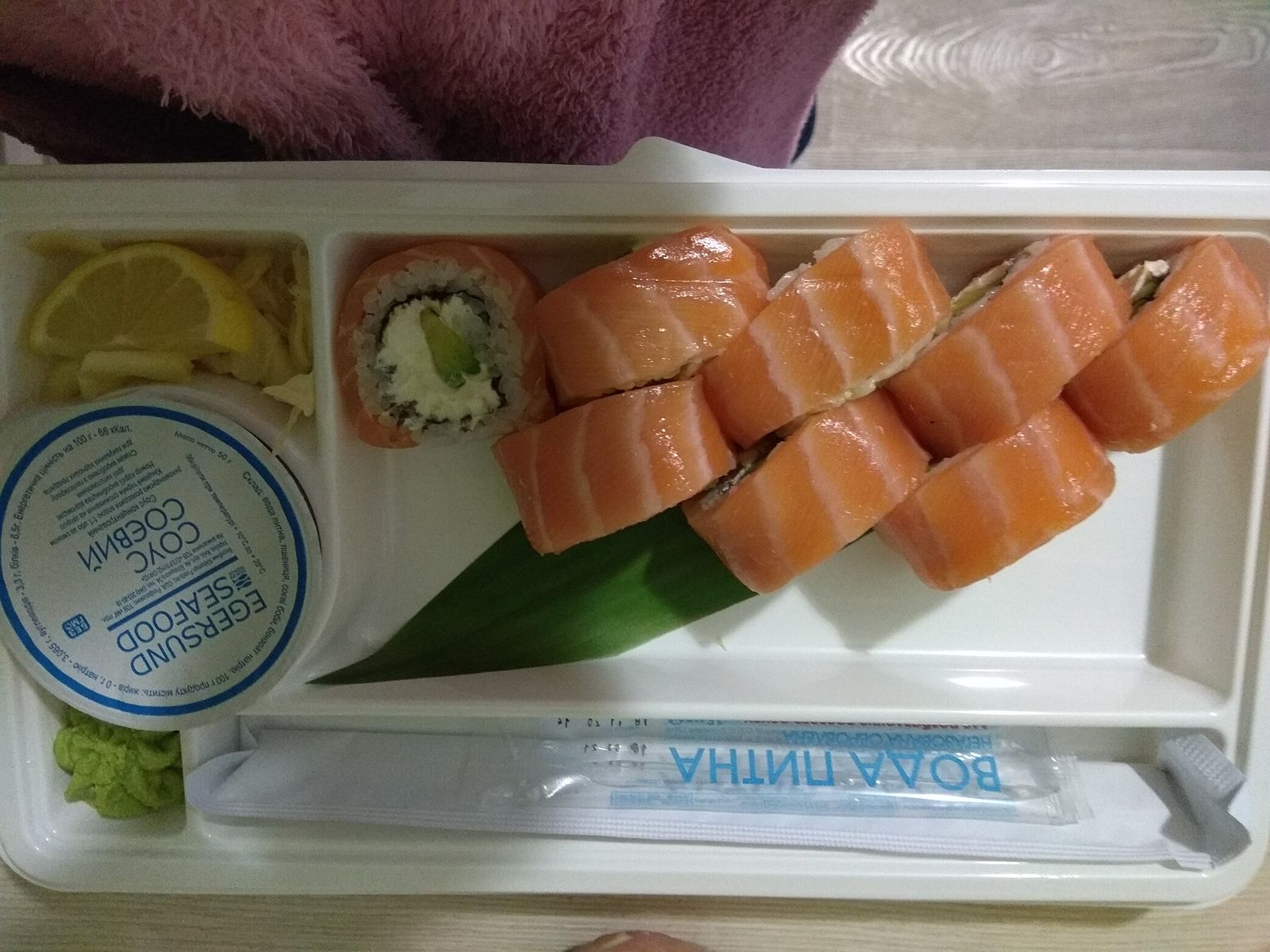 Признаться я офигела. Такой ’консистенции’ суши я даже в паршивом СушиВок не встречала (иногда на работе всякие фастфуды заказываем)