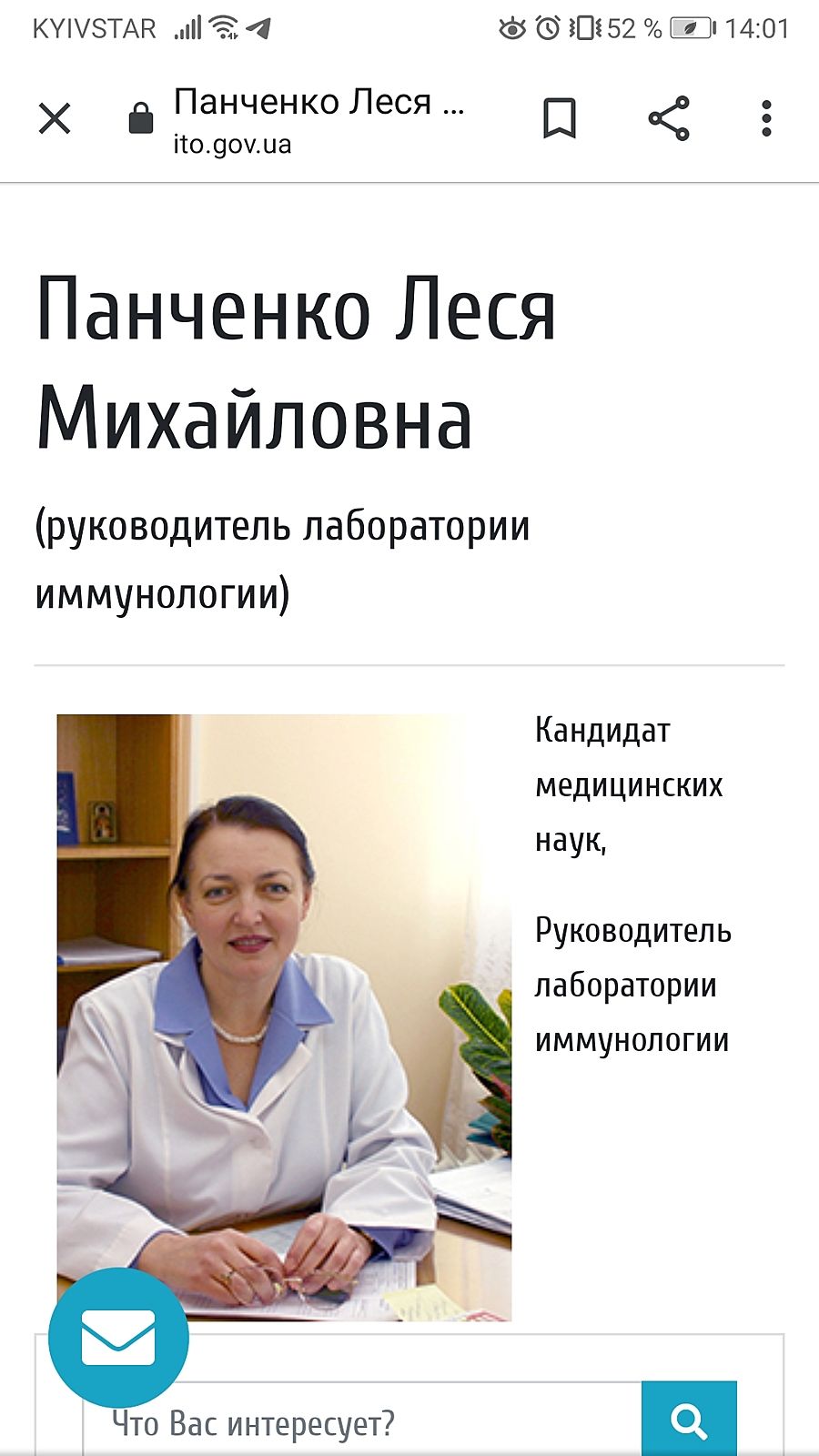 На меня очень хорошее впечатление произвела имунолог в институте травматологии и ортопедии на Воровского. Леся Михайловна. Она профи и фанат своего дела. Это комментарии разных врачей о ней. Контактов нет. Давно обращалась. Она нашла причину моих проблем со здоровьем.