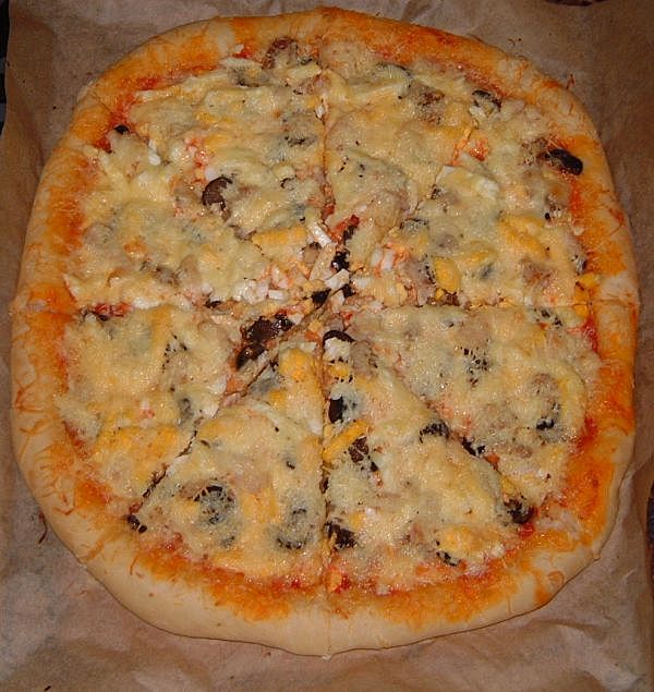 Делаю пиццу. Колбасу не покупаем, магазинные х/б тоже. В пиццу тоже люблю яйца добавлять.