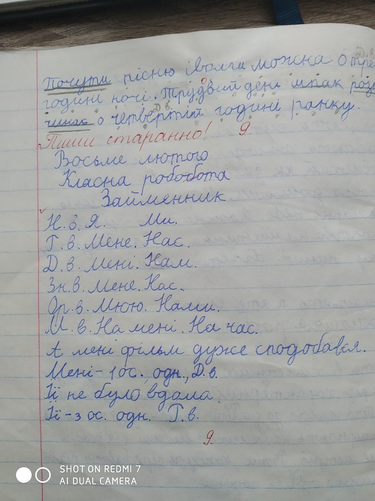 Перша сторінка не розберу,а на другій-все помилки,там нема нічого правильного.Ви що,уроки не перевіряєте?