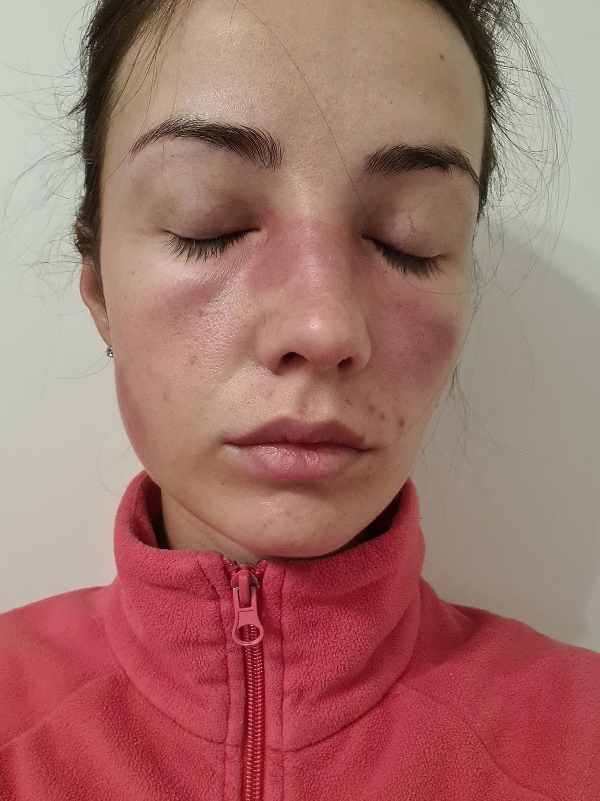 Один раз после стоматолога, она мне выписала таблетки я выпила и лицо разнесло. Потом отек сошел, синяк под глазом остался.